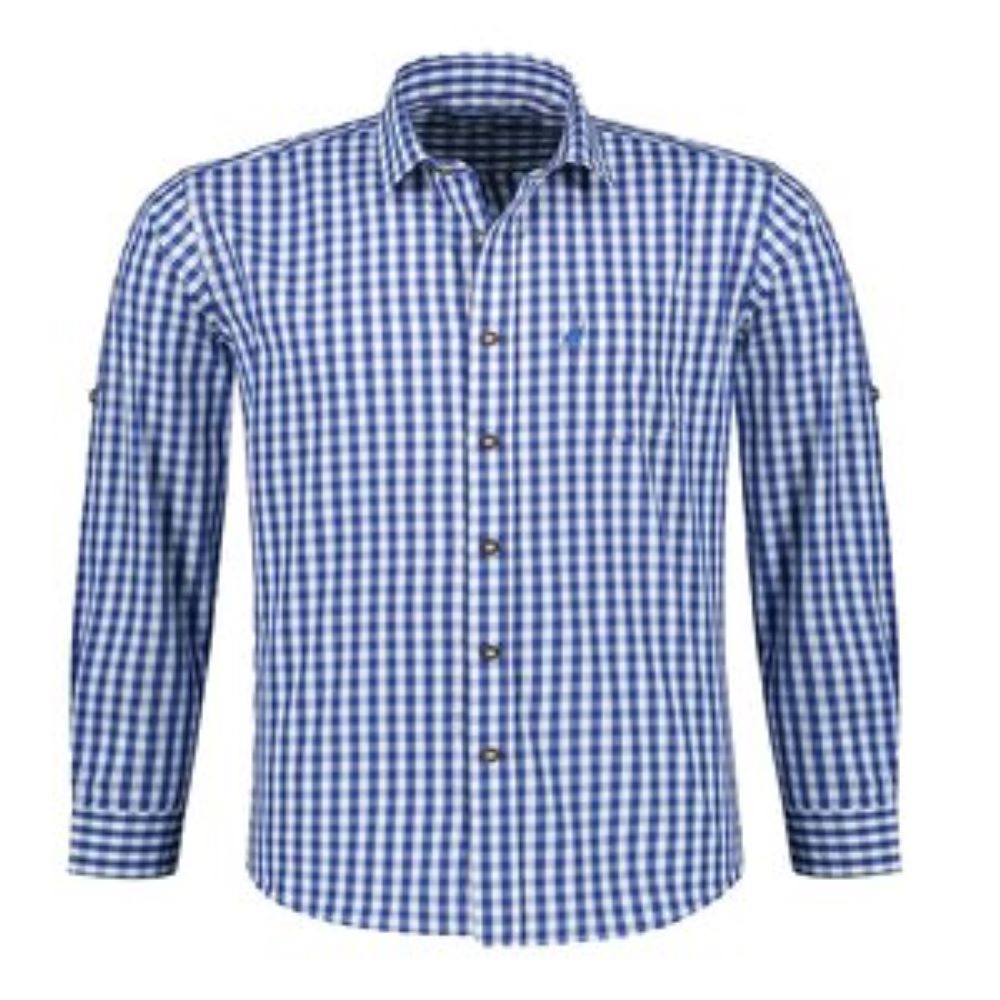 Oktoberfest Costume Shirt – Blue & White checked– Deer Embroidered Pocket