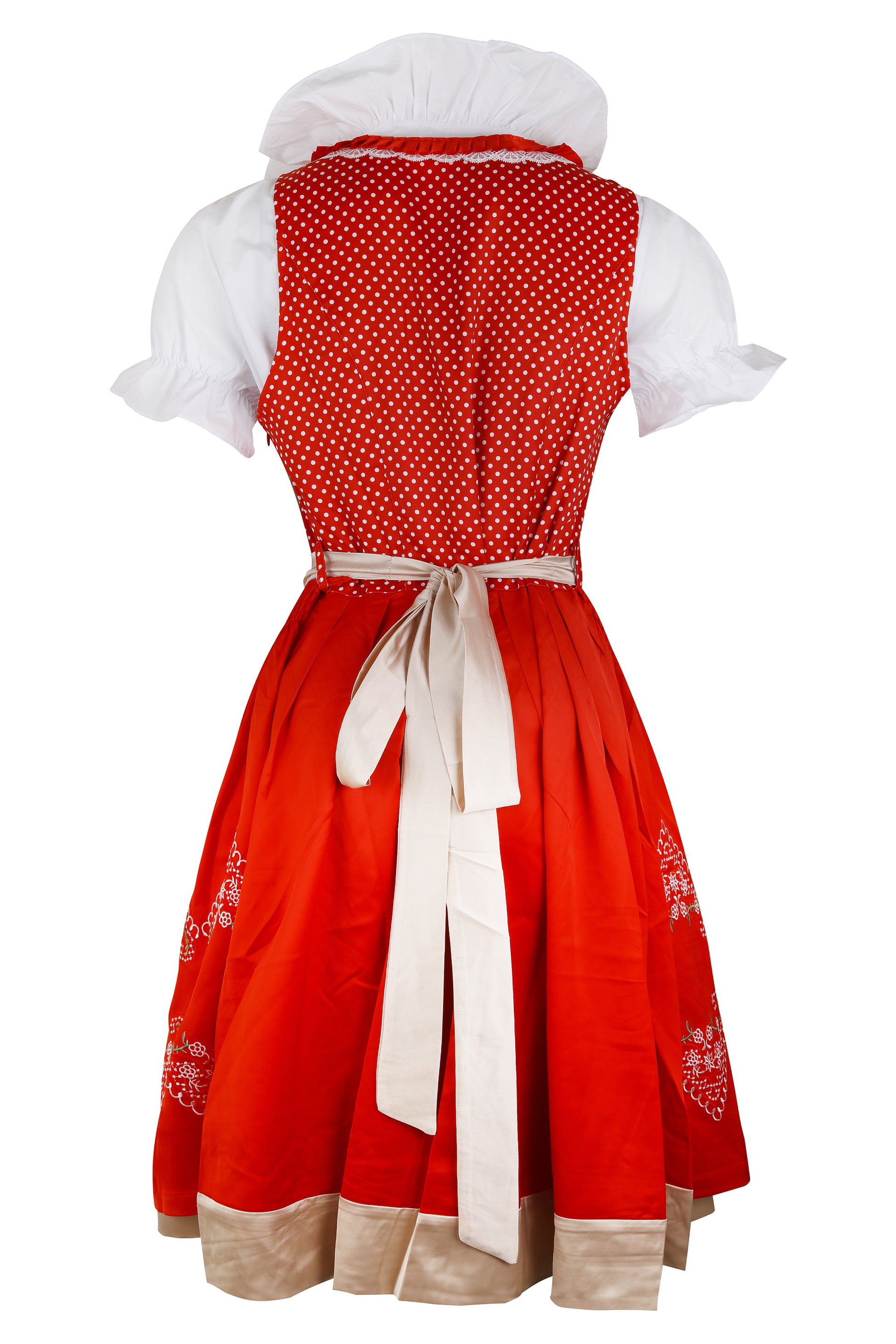 Traditional Bavarian Dirndl “Alpenrot” – 3-Piece Set (Dress + Apron + Blouse) – Red with White Embroidery – Oktoberfest Costume